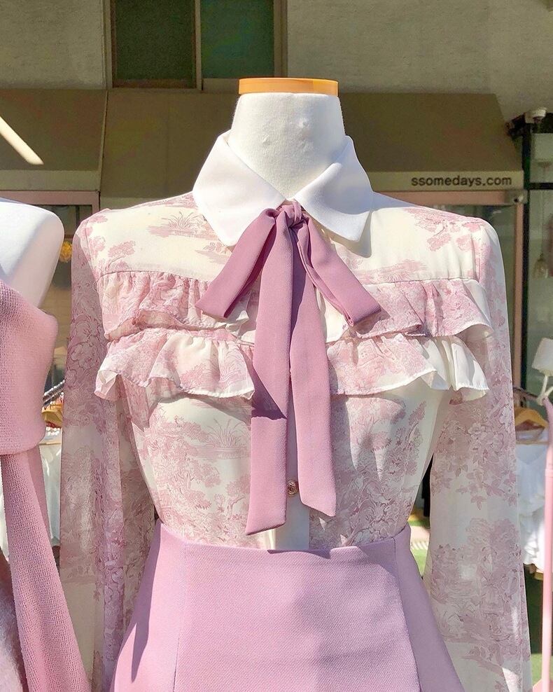 桜ピンクの春色シフォンブラウス*ふんわり優しい大人フェミニン