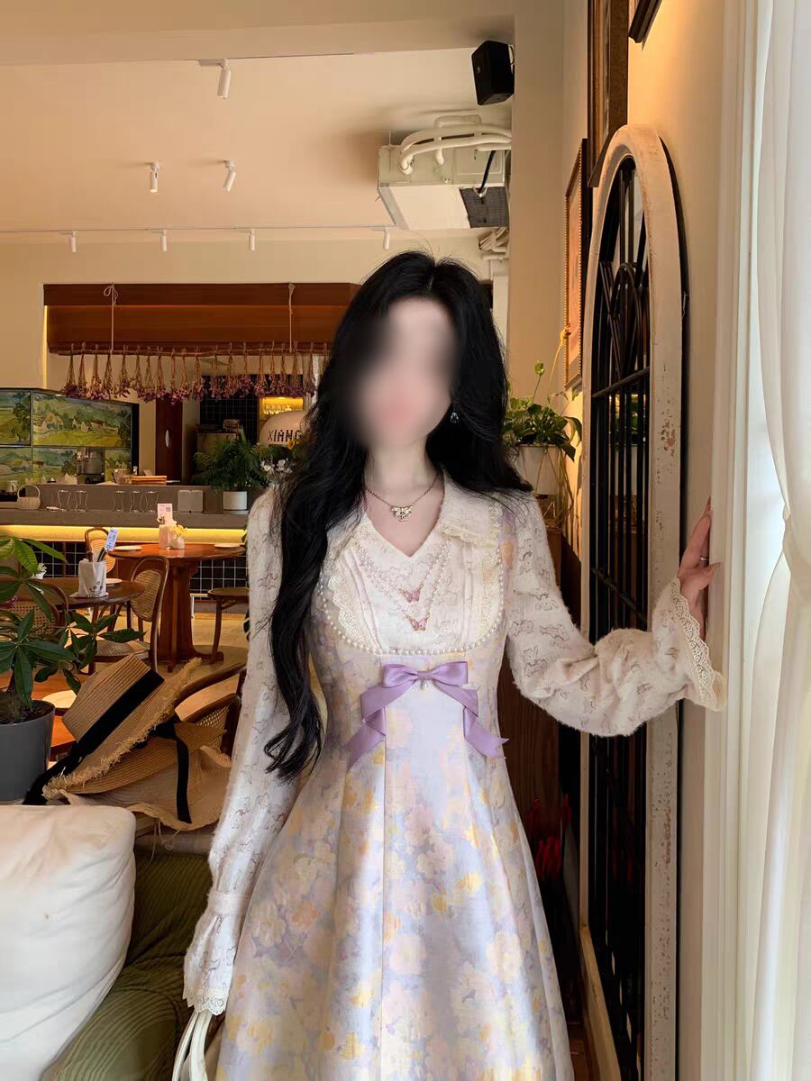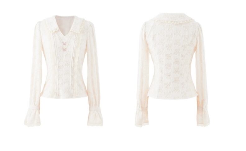 フリルレースVネックブラウス |清楚感あふれる 大人可愛い 秋冬 長袖トップス