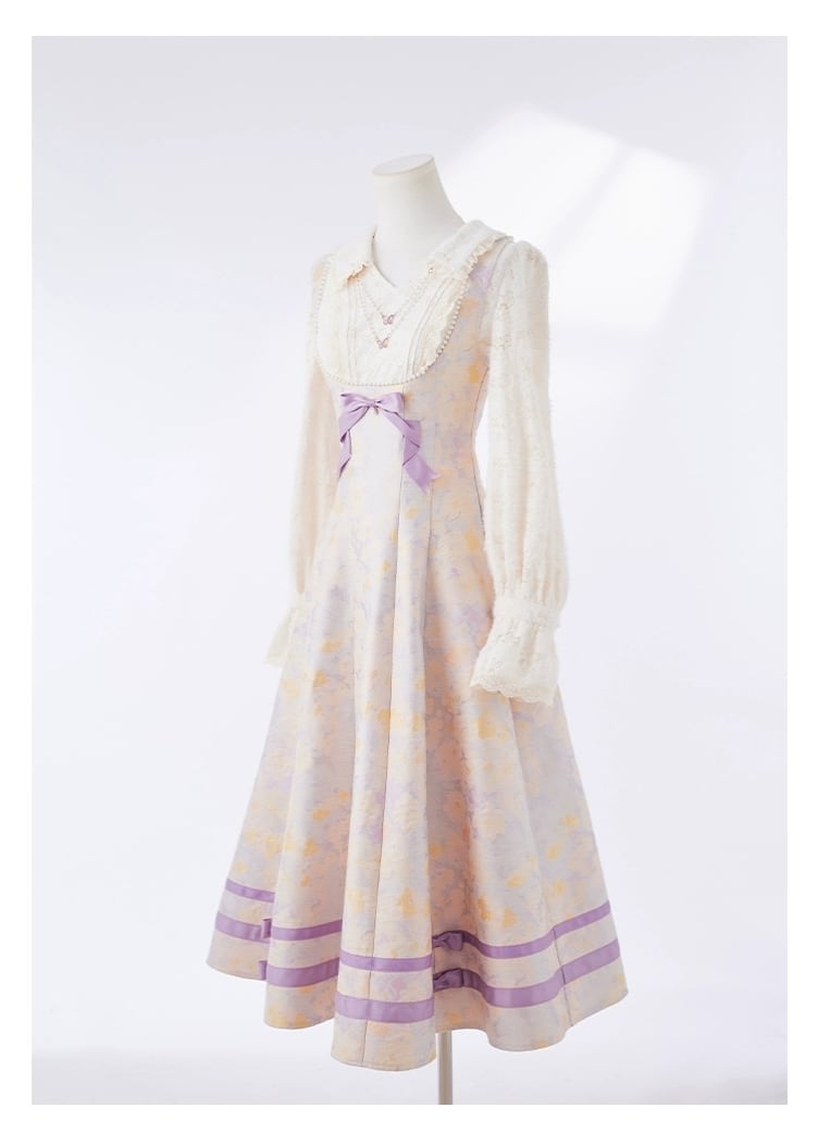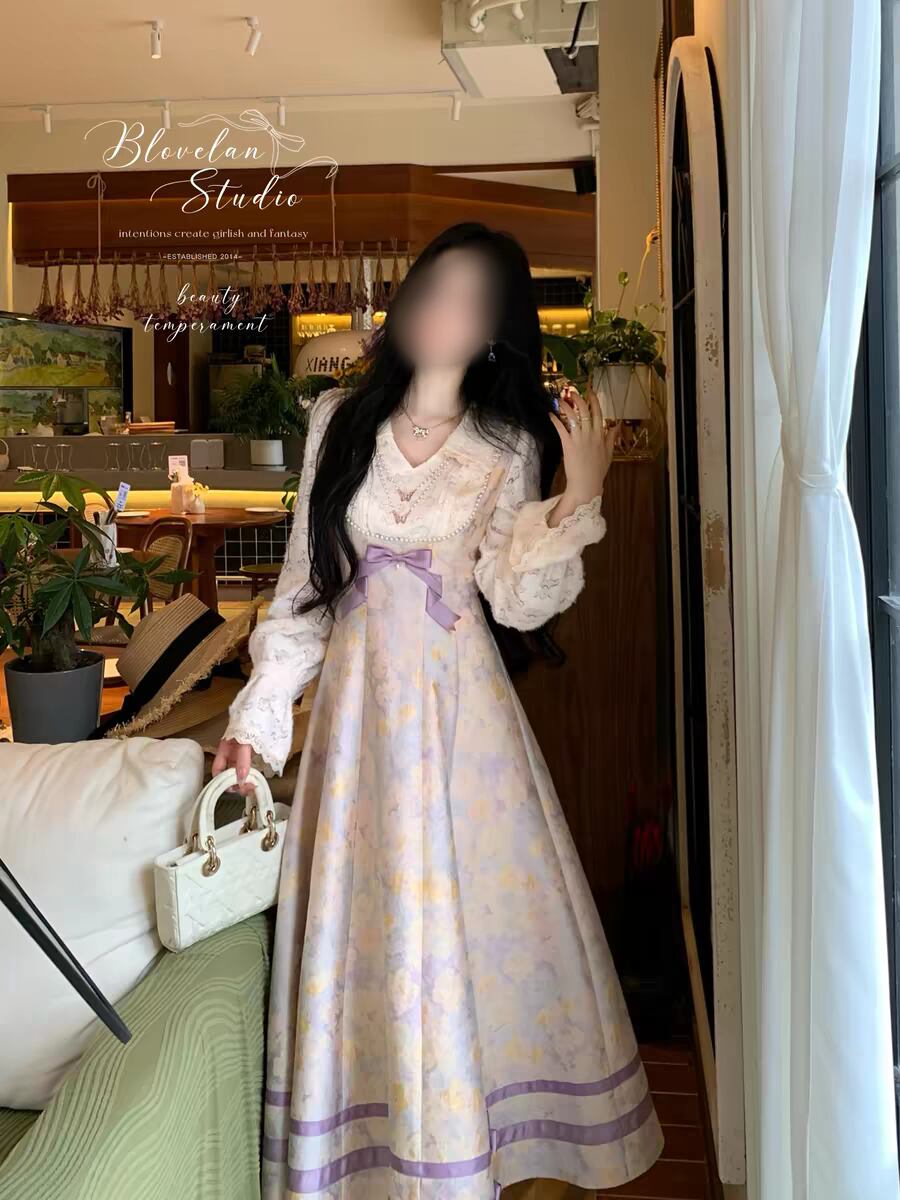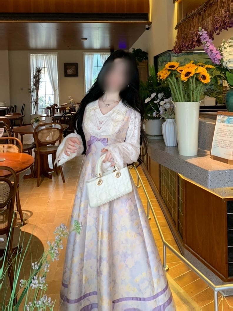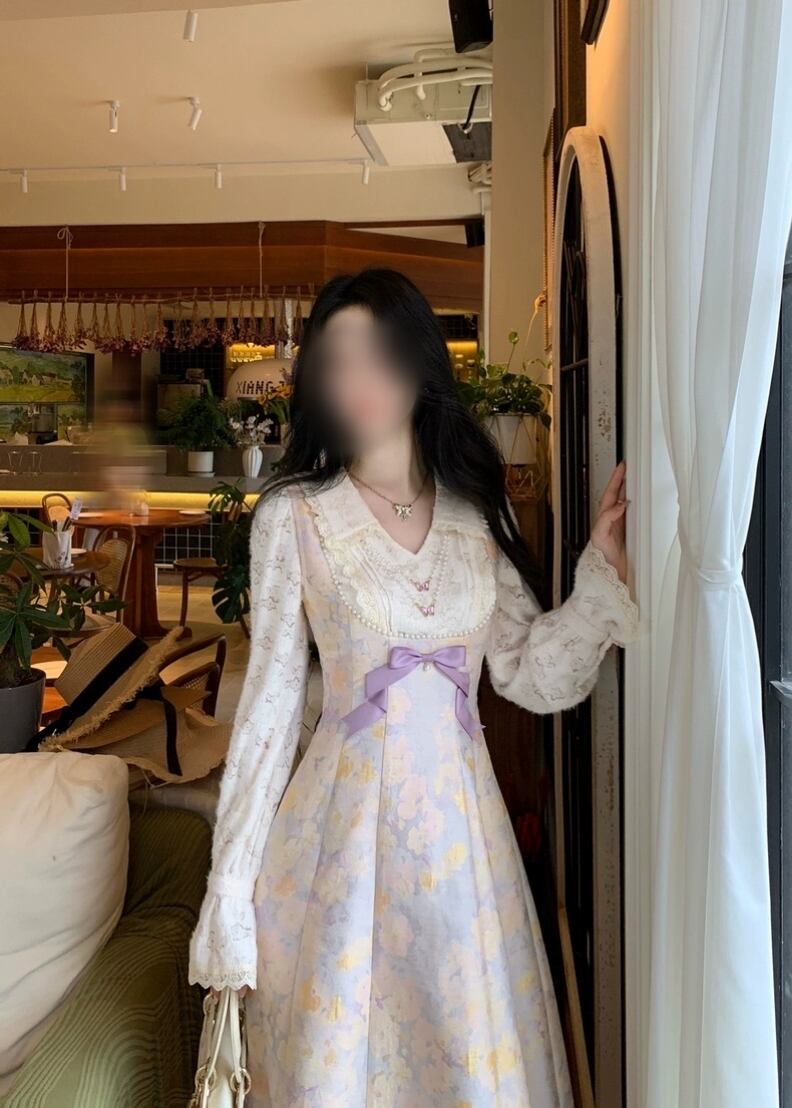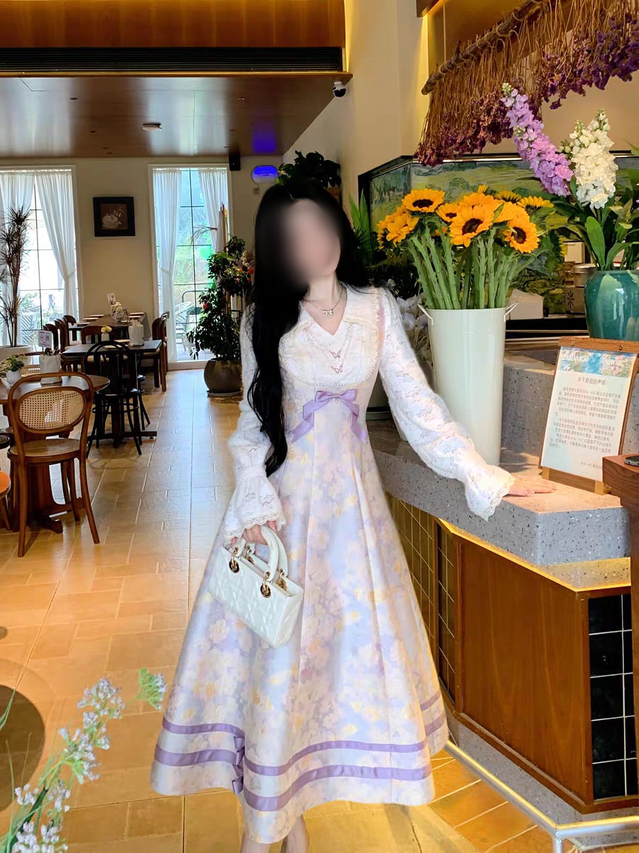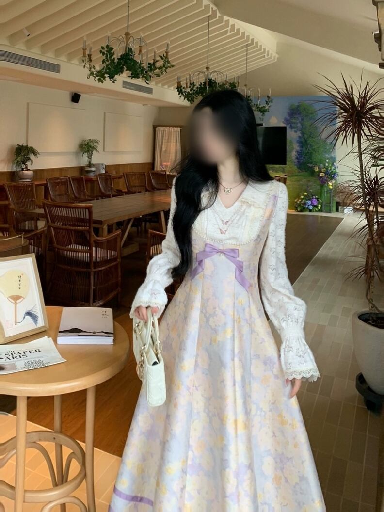 ラベンダーミスト花柄ワンピース |透明感のある大人フェミニン・秋冬ロングワンピース