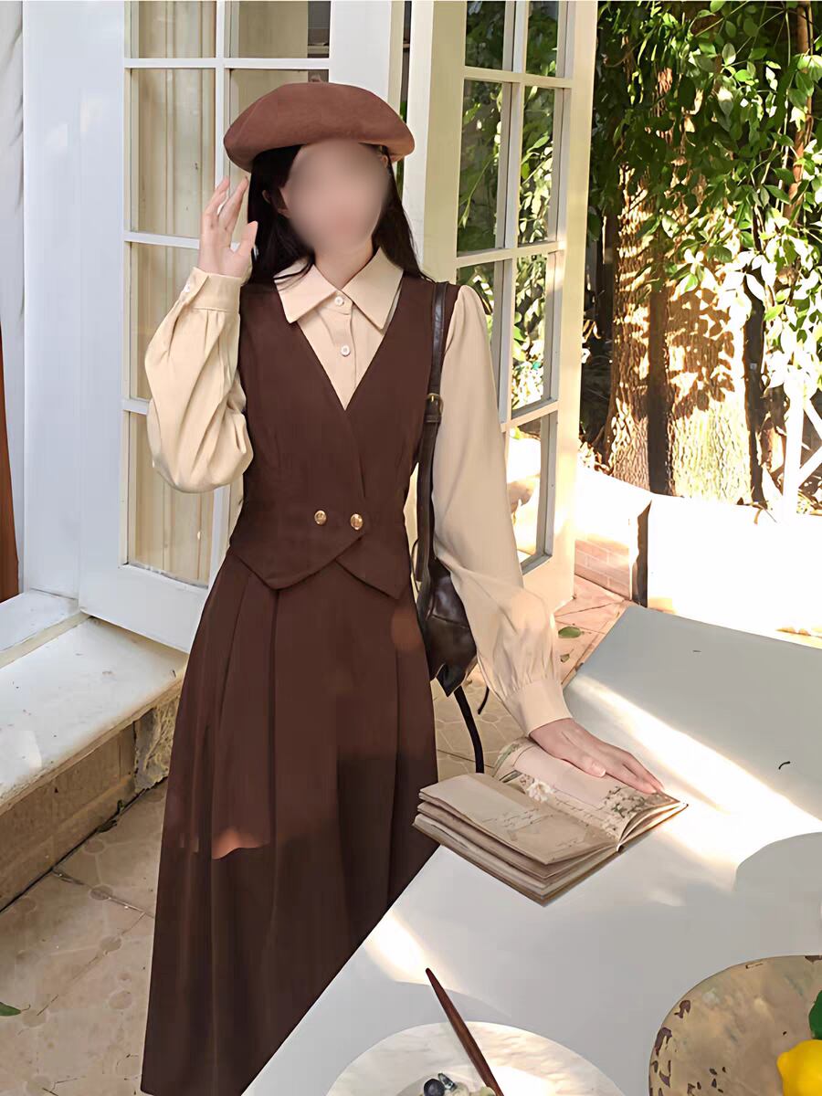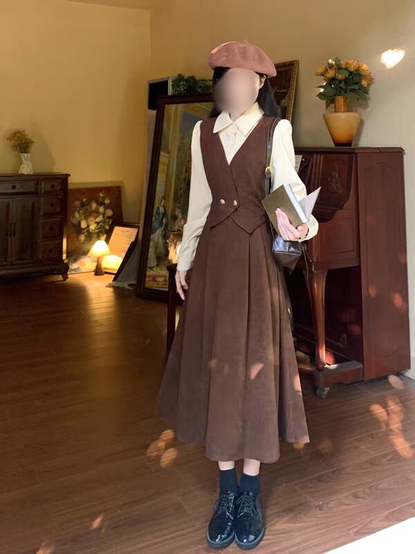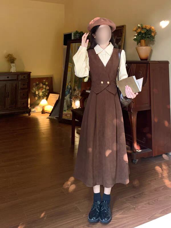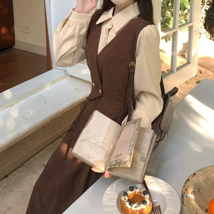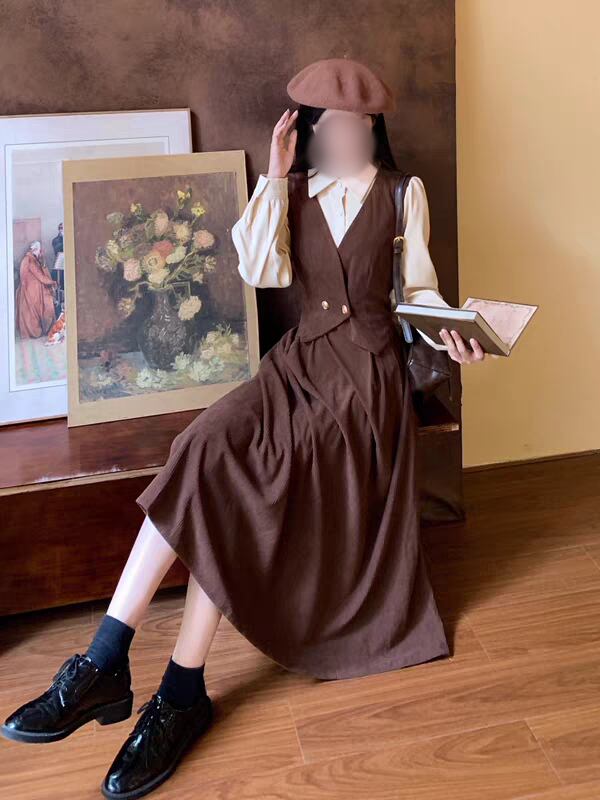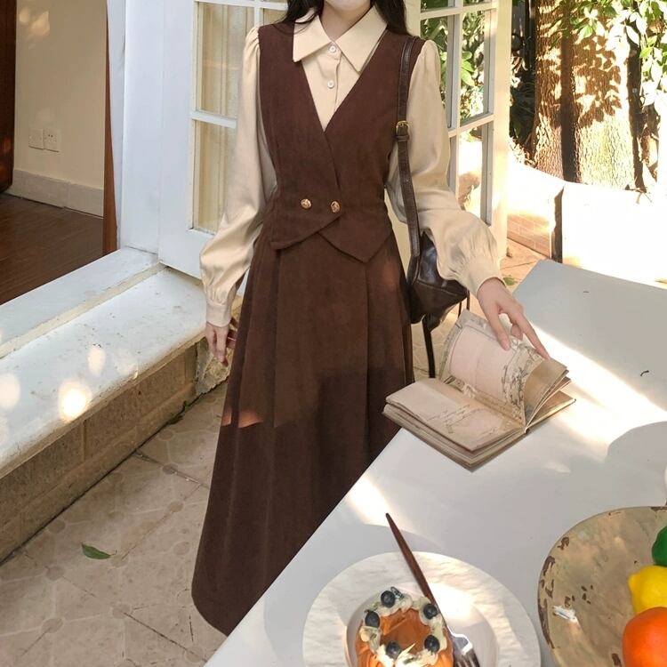 クラシカル配色ジャンパースカート風ロングワンピース