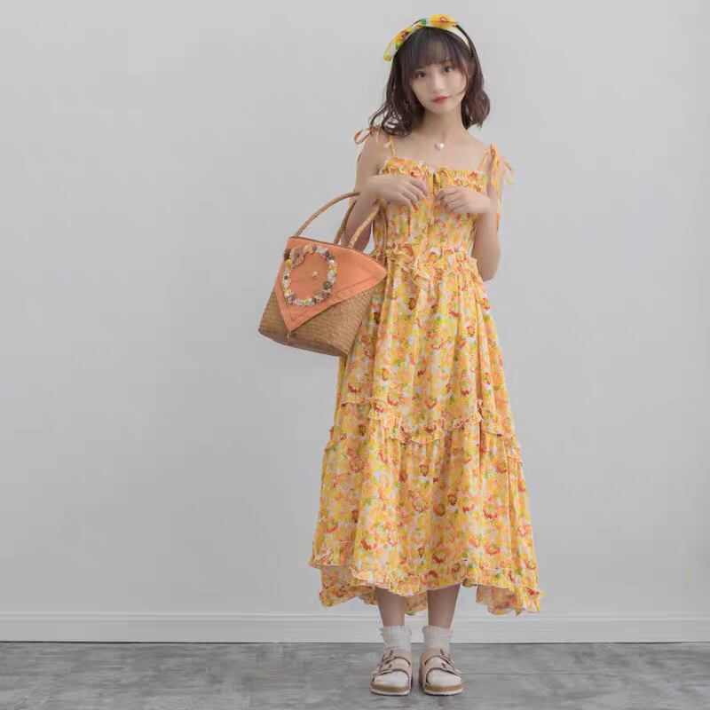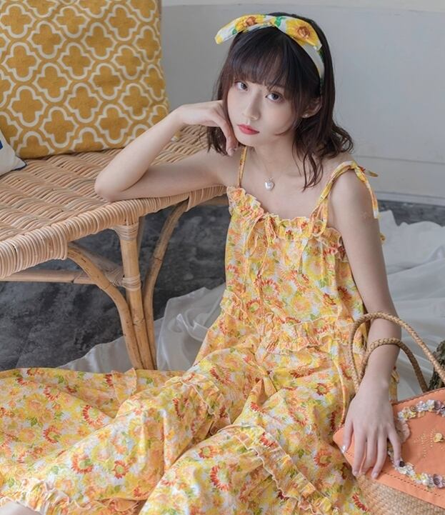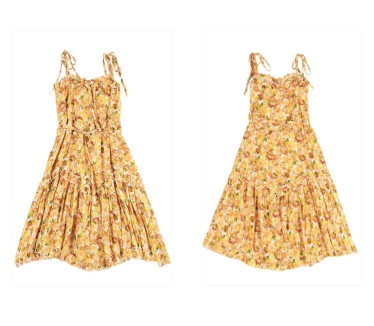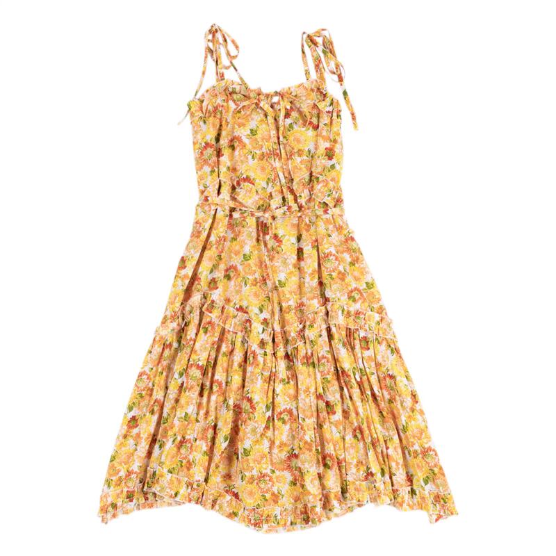イエロー かわいい ひまわり花柄ワンピース